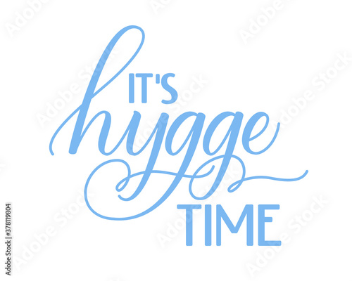 Handwritten brush calligraphy It is Hygge Time isolated on white. Vector illustration.