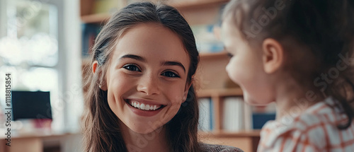 Happy Young Mother Smiling at Her Toddler Daughter Indoors