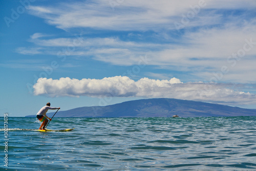 Hawaiian SUP Paddler Enjoy Ocean Ride In Maui