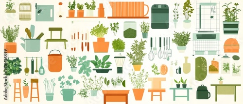 Herbs Spices Kitchen Tools Flat Design