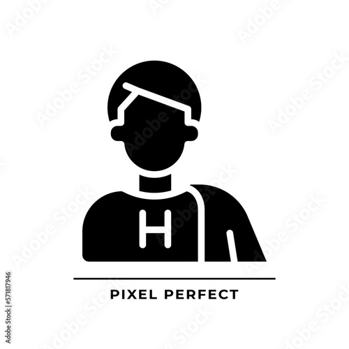 Hero black glyph icon. Character archetype. Overcoming troubles. Strong and brave person. Psychoanalysis. Silhouette symbol on white space. Solid pictogram. Vector isolated illustration