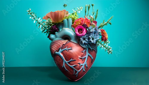 herz, 3d, neu, blumen, vase, blumenvase, close up, isoliert, photo, studio, human, menschliche, abstrakt, blume, dekoration, als, hintergrund, solid, y2k, neon, vibrant, bunt, organ, ad