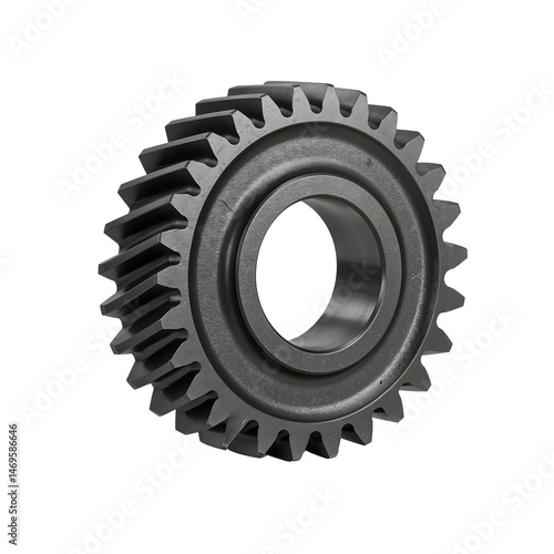 High-resolution isolated image of a steel gear with sharp edges