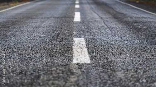Highway Horizons: Dynamic Picture of Asphalt Highway – Smooth Black Pavement Cutting Through Green Fields and Distant Hills, Yellow Center Lines, Roadside Guardrails, and Trucks Speeding Under a Cloud