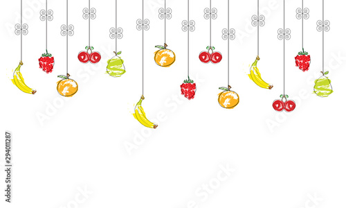 horizontal banner with fruits vector - strawberry, banana, pear, orange, cherry