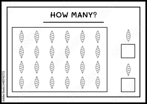 How many christmas ornament, game for children. Vector illustration, printable worksheet