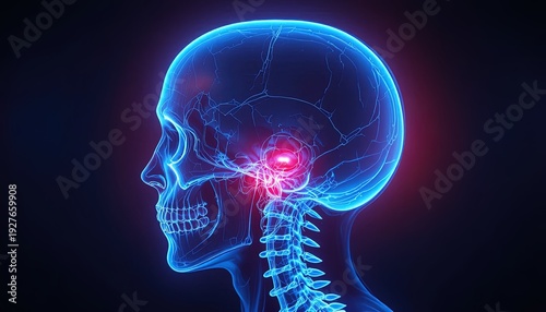 Human skull with highlighted pain in ear region