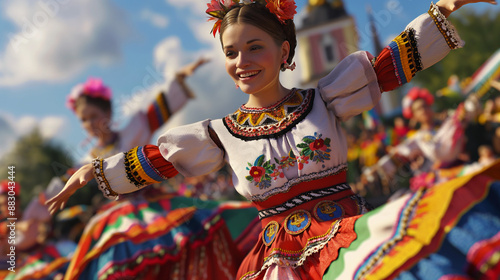 Hungarian folk dancers in traditional costume