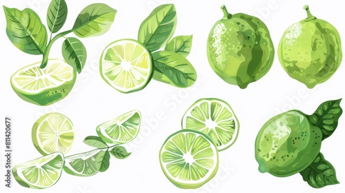 Icon of lime fruit and leaf with transparent background