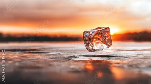 Icy Cube Sunset Crystal Clear Ice Cold Drinks Frozen Refreshing