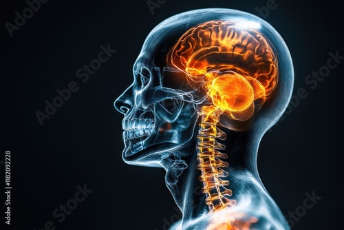Illuminated Brain Scan, Anatomy, X-Ray, Medical, Study, Dark Background, Healthcare, Education