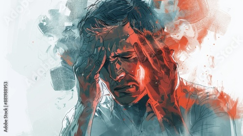 Illustration depicting a man experiencing a severe headache, highlighting health and medical concepts.