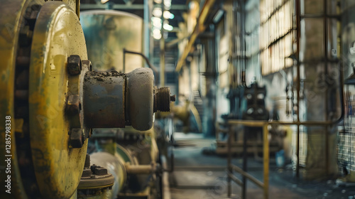 Industrial machinery in a factory setting with pipes and equipment, showcasing manufacturing processes