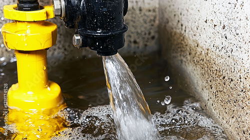 Industrial Water Flow: Close-up of a water treatment facility's pipe and valve system, showcasing the precise flow of water.