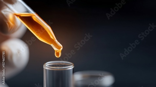Innovative Food Technology Shaping the Future of Culinary Solutions, A hand holding a dropper with a liquid about to drip into a test tube.
