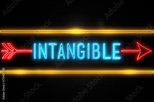 Intangible - fluorescent Neon Sign on brickwall Front view