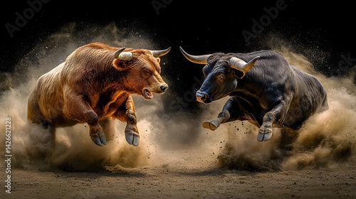 Intense Bull vs. Bear Fight in Dusty Arena with Photorealistic Detail