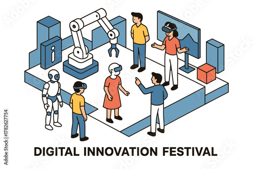 Interactive technology experience featuring robots and virtual reality at digital innovation festival