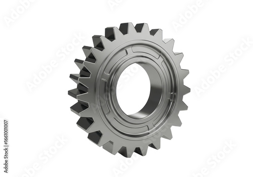 Isolated 3D Render of a Shiny Metallic Gear Wheel for Mechanical Systems
