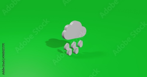 Isolated realistic white rain symbol front view with shadow. 3d illustration on green chroma key background