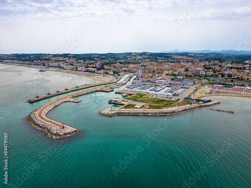 Italy, 09 June 2024: panoramic aerial view of the sea and the velvet beach of Senigallia in the province of Ancona Marche