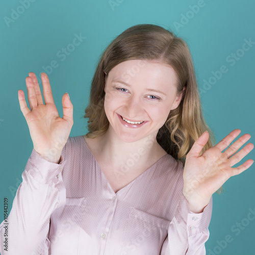 junge frau ist hoch erfreut