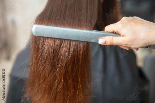 Keratin recovery hair and protein treatment pile with professional ultrasonic iron tool. Concept straighten spa