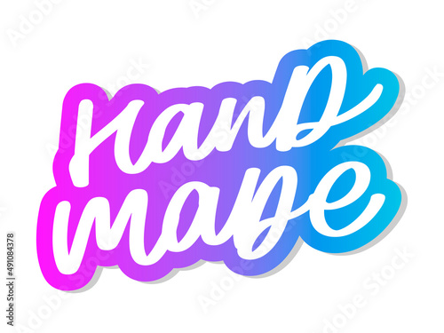 Label or logo with lettering hand made. Vector flat illustrations. Modern and stylish badge. Thin line inscription handmade, made with love, craft product on white.