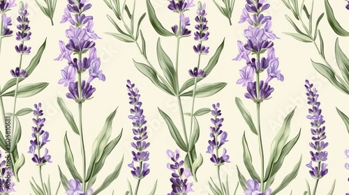 Lavender Flowers and Green Leaves Pattern