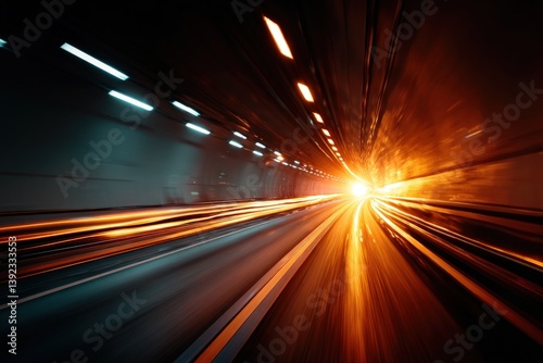 Light at end of tunnel, fast car motion blur, urban infrastructure