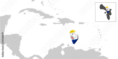 Location Map Bonaire on map Central America. 3d Bonaire flag map marker location pin. High quality map of Bonaire. Antilles. Central America. Netherlands. Vector illustration EPS10.