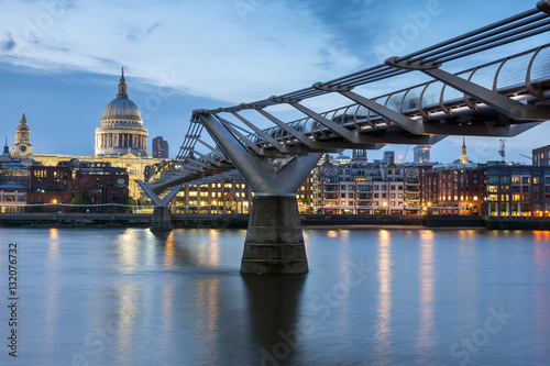 LONDON, ENGLAND - JUNE 17 2016: Night photo of Millennium Bridge and St. Paul Cathedral, London, Great Britain