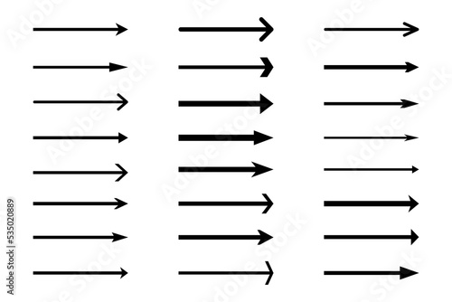 Long straight arrows. Set of vector arrow icons. Collection of pointers.