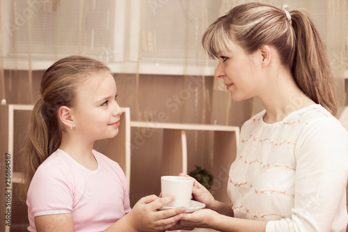 Loving daughter treating her mother to a mug of coffee