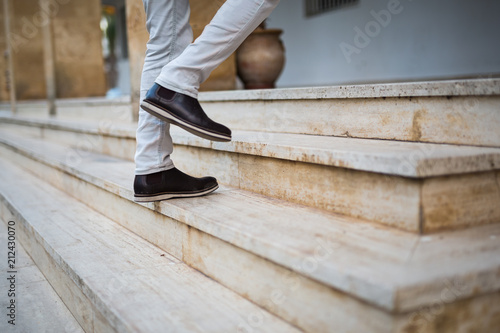 low section of a man walking up stairs
