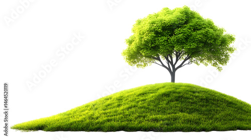 Lush Green Hill with a Majestic Tree Surrounded by Vibrant Grass in Nature's Embrace