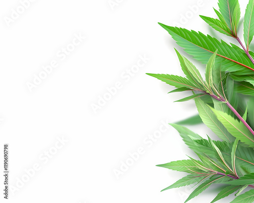 Lush green leaves border on white background; ideal for health, nature, or product design