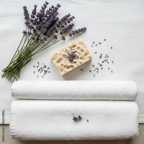 Luxurious lavender soap and soft towels offer a tranquil spa experience at home for relaxation