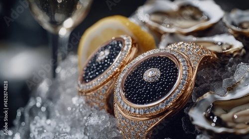Luxurious watches on ice, with oysters and champagne, for a high-end lifestyle