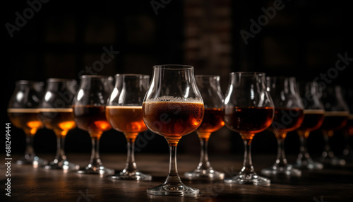 Luxury drinks collection on wood table in bar establishment generated by AI