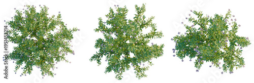 Lysionotus pauciflorus tree plan, top view, cutout, transparent background, isolate, Lush Green Foliage Branch with Delicate Purple Flowers, Detailed Natural Texture, Springtime Beauty