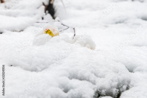 Magic of winter. Hellebore sticking out of the snow.
