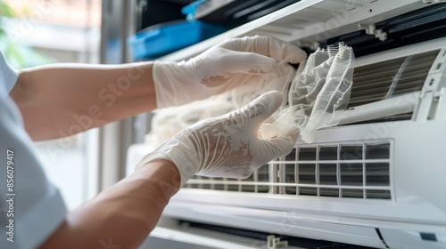 man cleaning the filters on an air conditioner