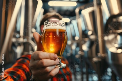 Man enjoying a glass of beer at a picturesque beer production facility on a relaxing travel vacation