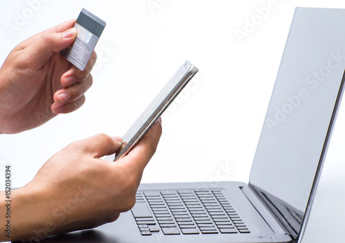 Man holding tablet pc and credit card indoor, Shopping Online