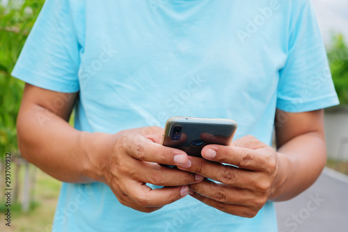 Man is using mobile phone.
