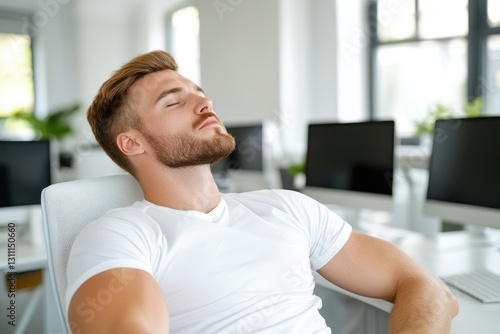 Man Relaxing In Modern Office With Computers Surrounding