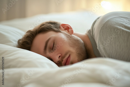 man sleeping in cozy bed