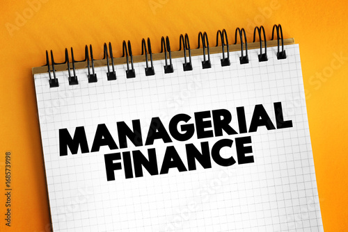 Managerial Finance is the branch of finance that concerns itself with the managerial application of finance techniques, text concept on notepad