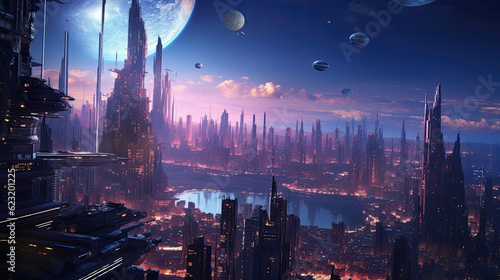 Metropolis adorned with neon lights watercolor illustration - Generative AI.